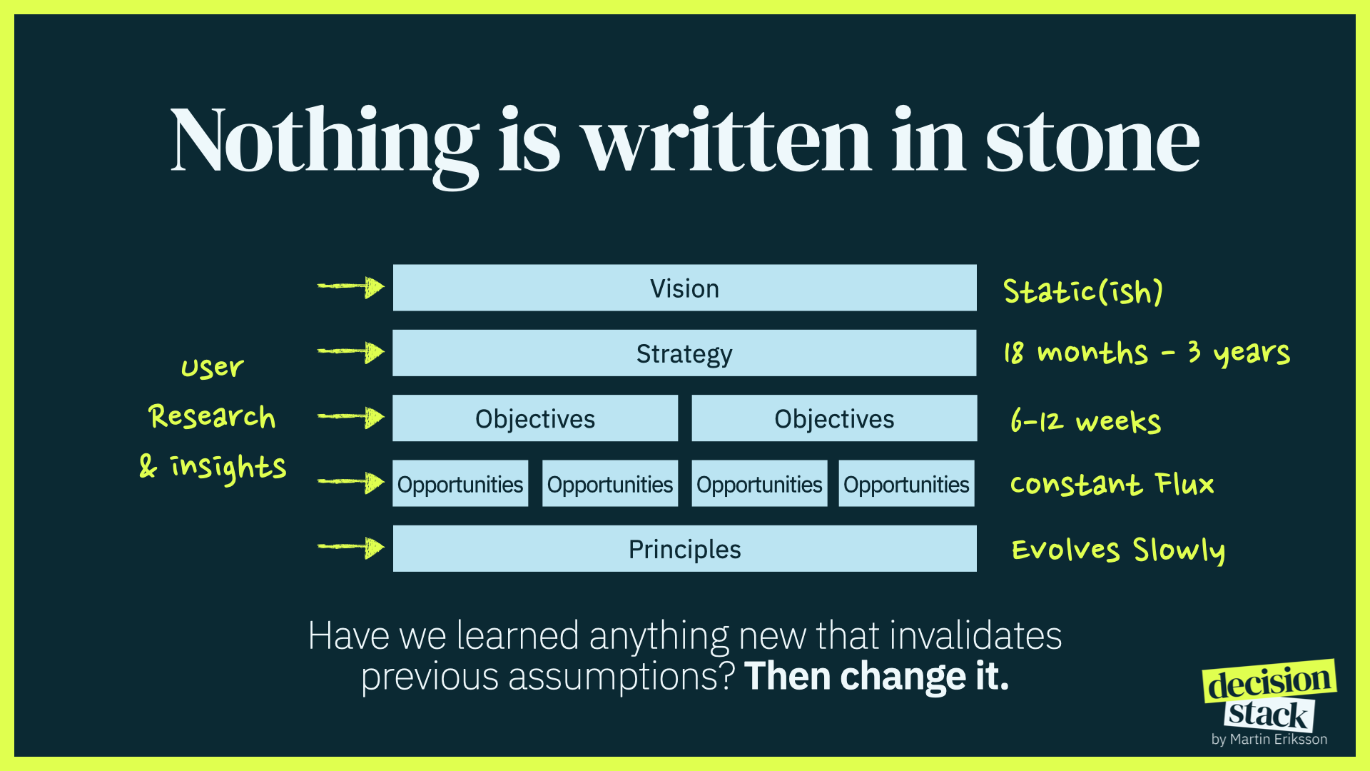 Maintain strategic clarity. As I've emphasised before, 95% of teams don't understand their company's strategy. AI acceleration makes this problem worse, not better. When your entire Decision Stack - from vision down to daily execution - isn't aligned, giving teams AI tools just amplifies the confusion at 10x speed. You need clarity at every level: vision, strategy, objectives, opportunities, and principles. If your team doesn't understand why you're building something, AI will only help them build the wrong thing faster.