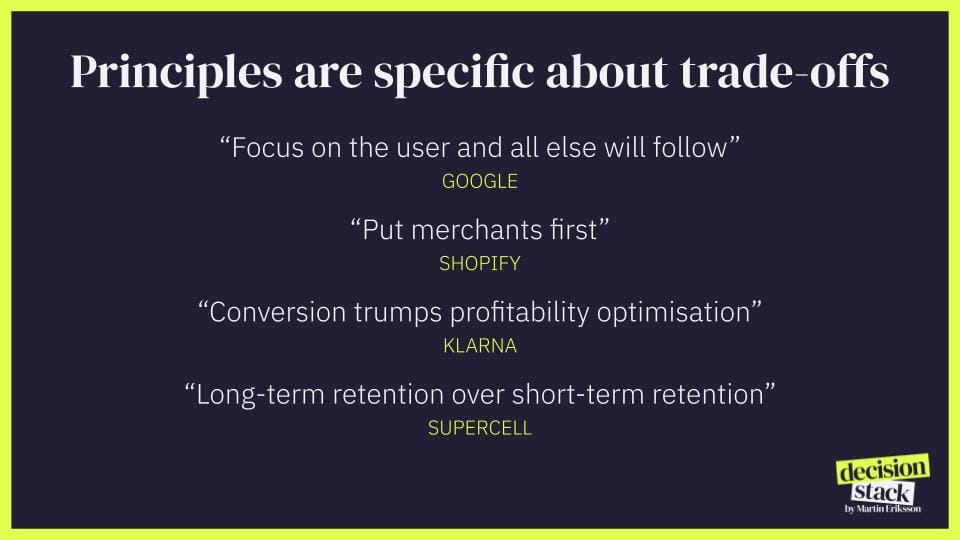 But to help make actual product decisions, and drive the product you want to build you need something else. You need principles.